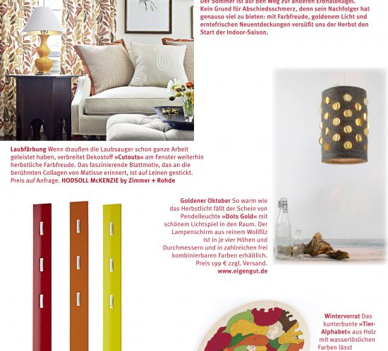 Der Sommer ist auf den Weg zur anderen Erdhalbkugel. Kein Grund für Abschiedsschmerz, denn sein Nachfolger hat genauso viel zu bieten: mit Farbfreude, goldenem Licht und erntefrischen Neuentdeckungen versüßt uns...